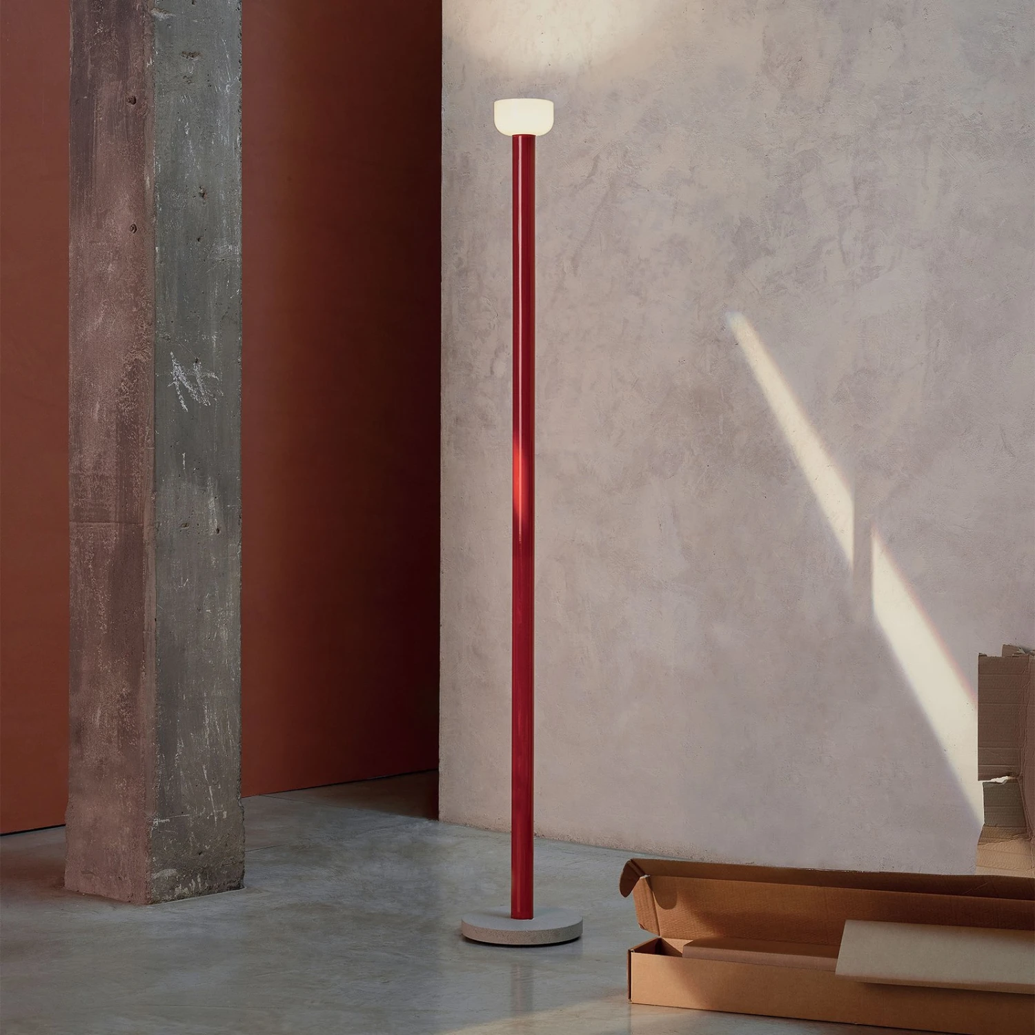 Der Sockel der Leuchte besteht aus Zement, während das Gestell aus Aluminium und der Diffusor aus Glas hergestellt wurde. Durch ihre schlanke Gestalt fügt sich Bellhop in jede Wohnumgebung gut ein und eignet sich insbesondere für die Nutzung im Wohn- oder Schlafzimmer sowie als moderner und effektiver Lichtspender im Flur. Das Stromkabel verfügt über eine Länge von 2,70 Meter, außerdem ist ein Pedalschalter angebracht, über den die Leuchte ein- und ausgeschaltet sowie gedimmt werden kann. Die Helligkeit lässt sich von 10 % bis 100 % regulieren.