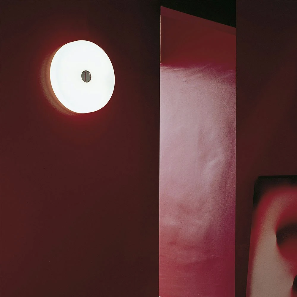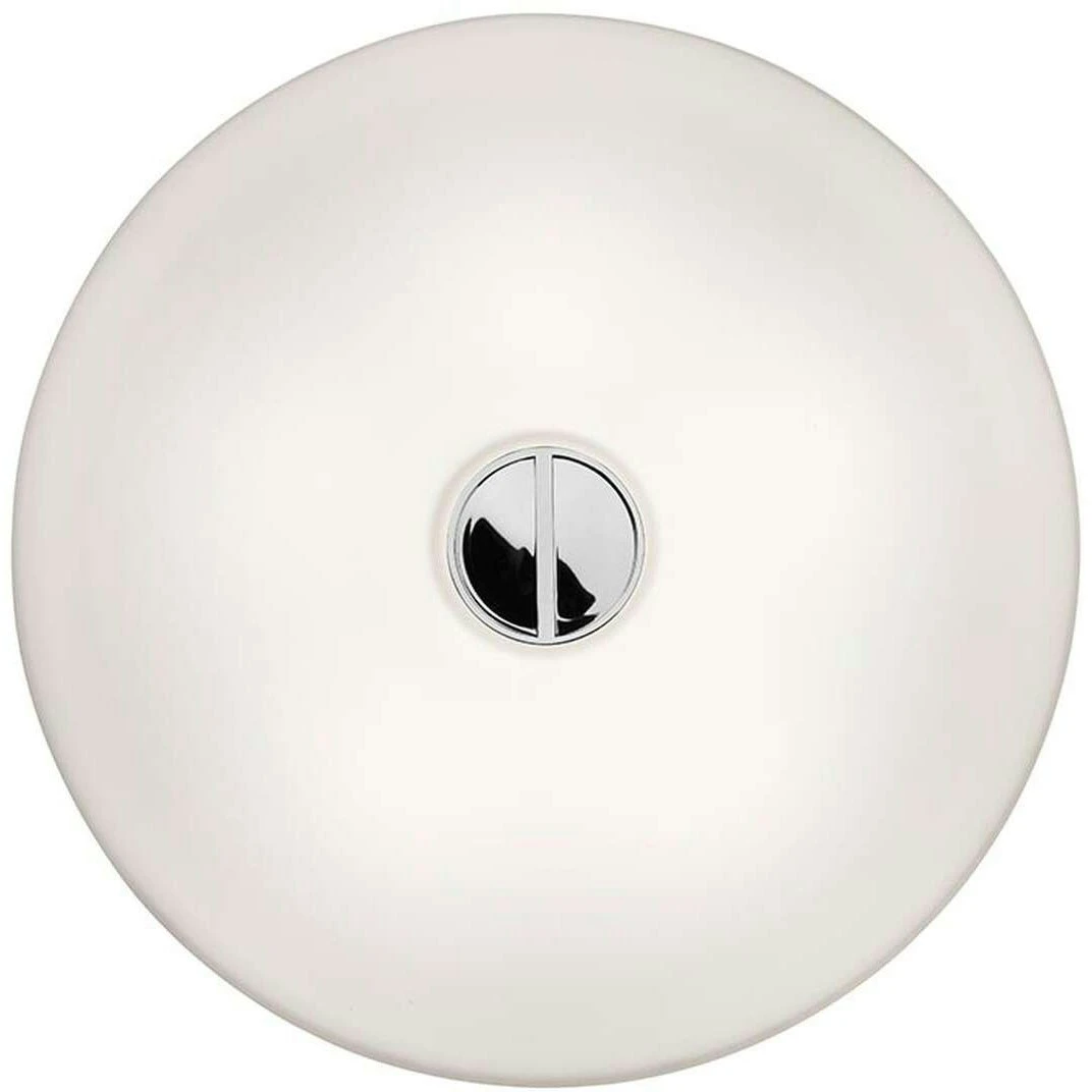 Button HL ist eine Decken- und Wandleuchte, die 2004 von Piero Lissoni für die italienische Marke Flos entworfen wurde. Die Lampe ist so konzipiert, dass sie sowohl an der Wand als auch an der Decke befestigt werden kann. Erhältlich in mehreren Größen, die sowohl im Innen- als auch im Außenbereich montiert werden können (IP40). Die Leuchte besteht aus mundgeblasenem Opalglas.