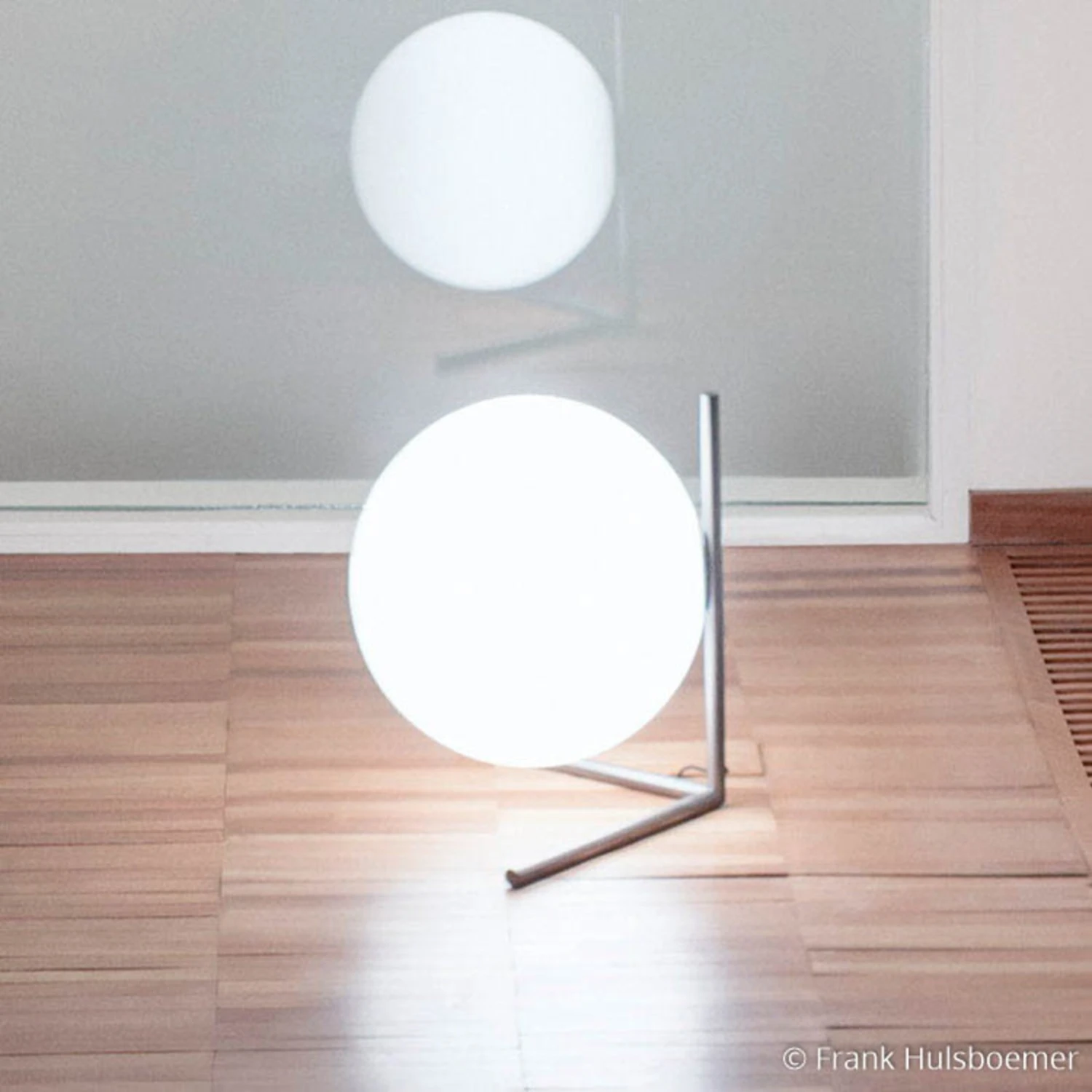 Ob auf der Fensterbank, auf einem Regal oder auf einem Tisch, die Tischleuchte IC Lights T2 stellt an jedem Platz und in jedem Raum ein dekoratives Highlight dar. Der kugelförmige Schirm besteht aus geblasenem Opalglas und scheint fast zwischen den drei schmalen Metallstreben aus verchromtem Stahl zu schweben, die das Gestell bilden. Der Glasschirm strahlt rundherum sanftes Licht in die Umgebung und kreiert so auch ein behagliches Ambiente.