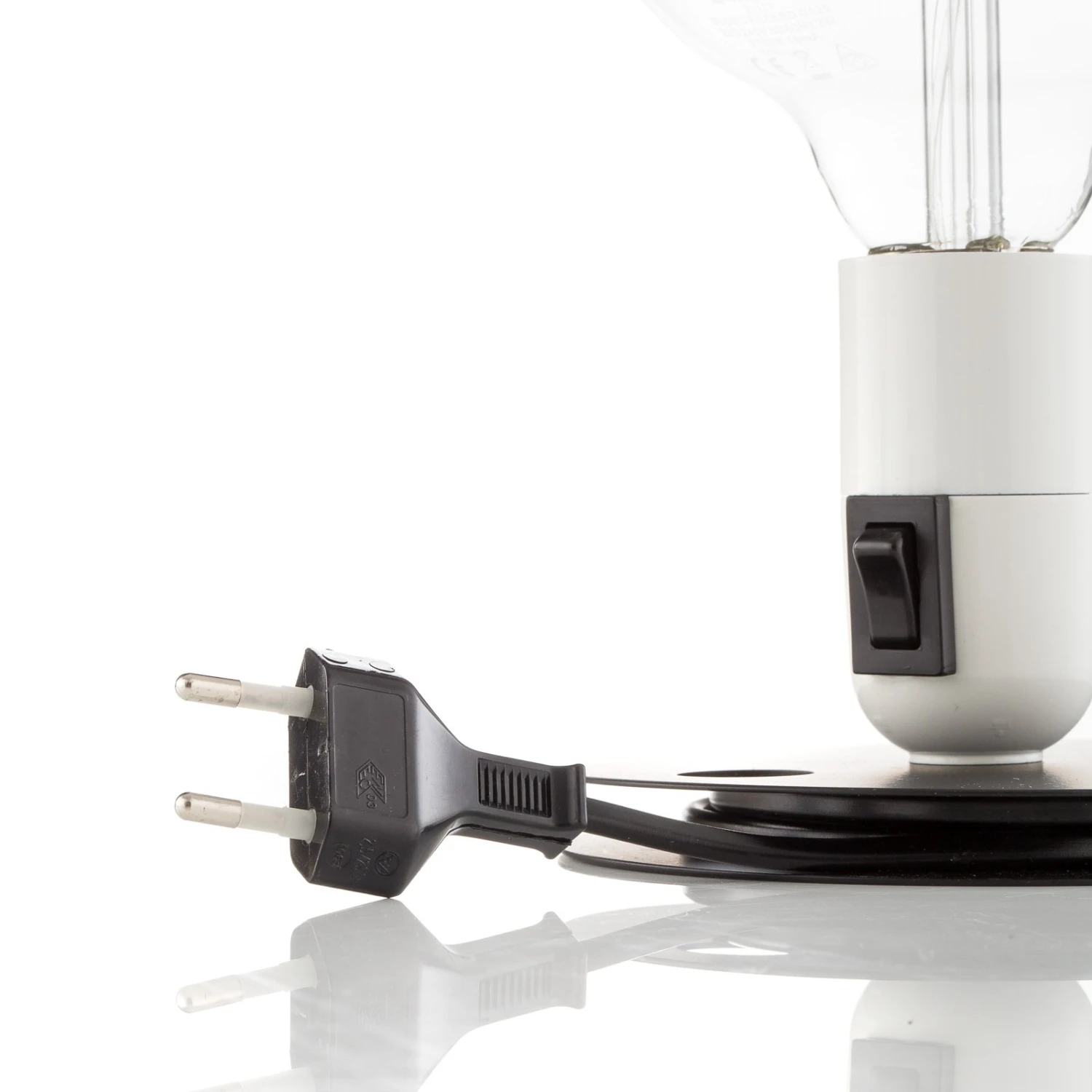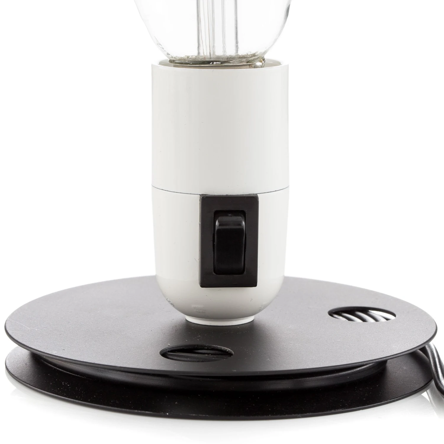 Der Designer Achille Castiglioni entwarf Lampadina für den Flos-Ausstellungsraum in Turin im Jahre 1972. Das Design geht nun mit trendiger Farbe erneut an den Start. Die Tischleuchte besteht aus einem klaren LED-Leuchtmittel, das einen runden, satinierten Kreis besitzt, der ca. ein Drittel der Lampe ausmacht. Dieser Teil sorgt dafür, dass in diesem Bereich die Reflexion des Lichts begrenzt wird und macht so zum Beispiel eine Verwendung als Nachtischleuchte möglich. Zusätzlich lässt die Filamentoptik Lampadina dekorativ wirken. Der Sockel besteht aus einer Fassung mit Kippschalter und einem filmrollenartigen Fuß, der das Aufrollen von überschüssigem Kabel ermöglicht.