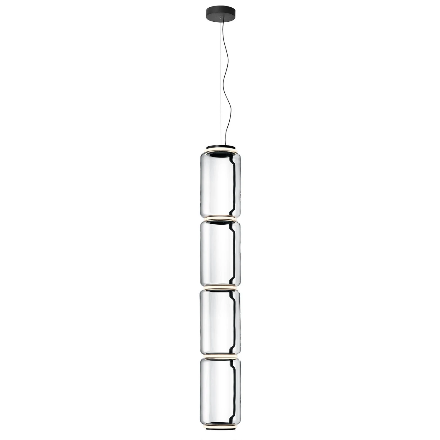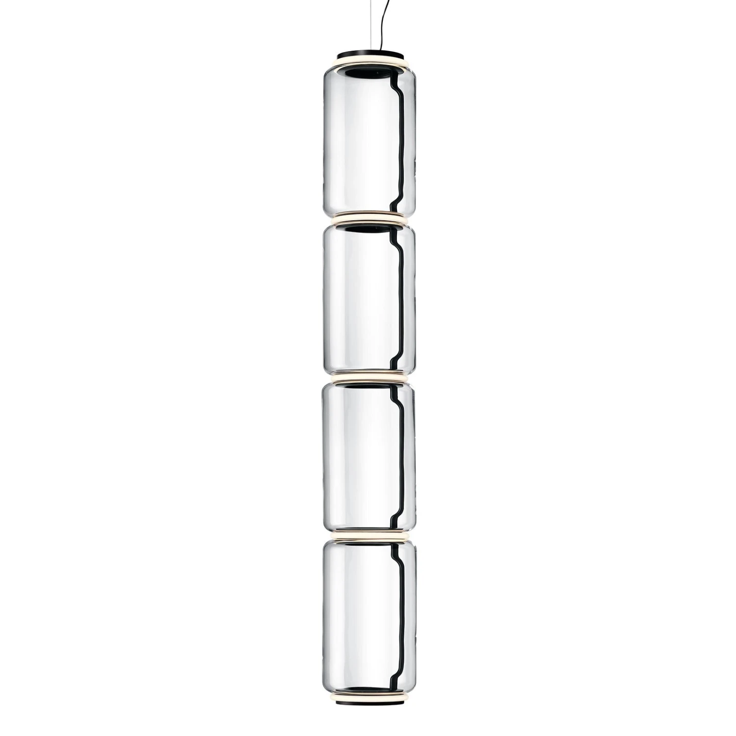 Der Begriff Noctambule bezeichnet eine Nachteule oder einen Nachtschwärmer und wird von der von Designer Konstantin Grcic entworfenen LED-Hängeleuchte perfekt interpretiert. Die einzelnen, zylindrischen Glaselemente sind aus mundgeblasenem, transparentem Glas gefertigt und werden lediglich von den schmalen, ringförmigen Silikondiffusoren in opalweißer Farbe unterbrochen.