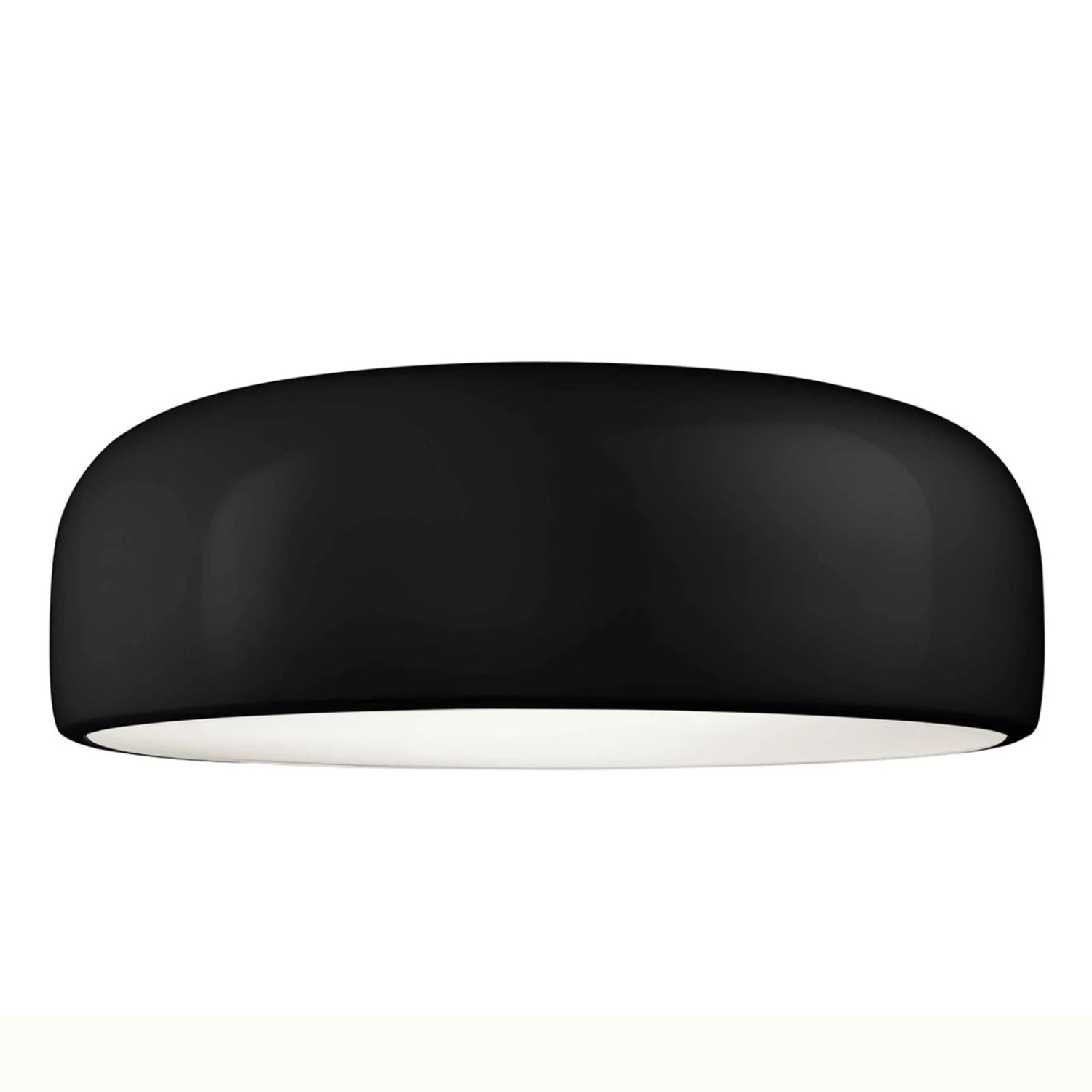 Die rundliche LED-Deckenleuchte Smithfield besteht aus einem schalenförmigen Metallschirm und einem Diffusor aus Methacrylat. Die tolle Formgebung und die glänzende Oberfläche machen diese Deckenleuchte von Flos zu einem echten Blickfang. Das moderne Design ist dezent und unauffällig. Der Diffusor, hinter dem sich die moderne LED-Technik verbirgt, streut das warmweiße Licht und erzeugt so einen gemütlichen Lichtschein. Das elegante Schwarz der Leuchte macht sie zu einem echten Hingucker.
