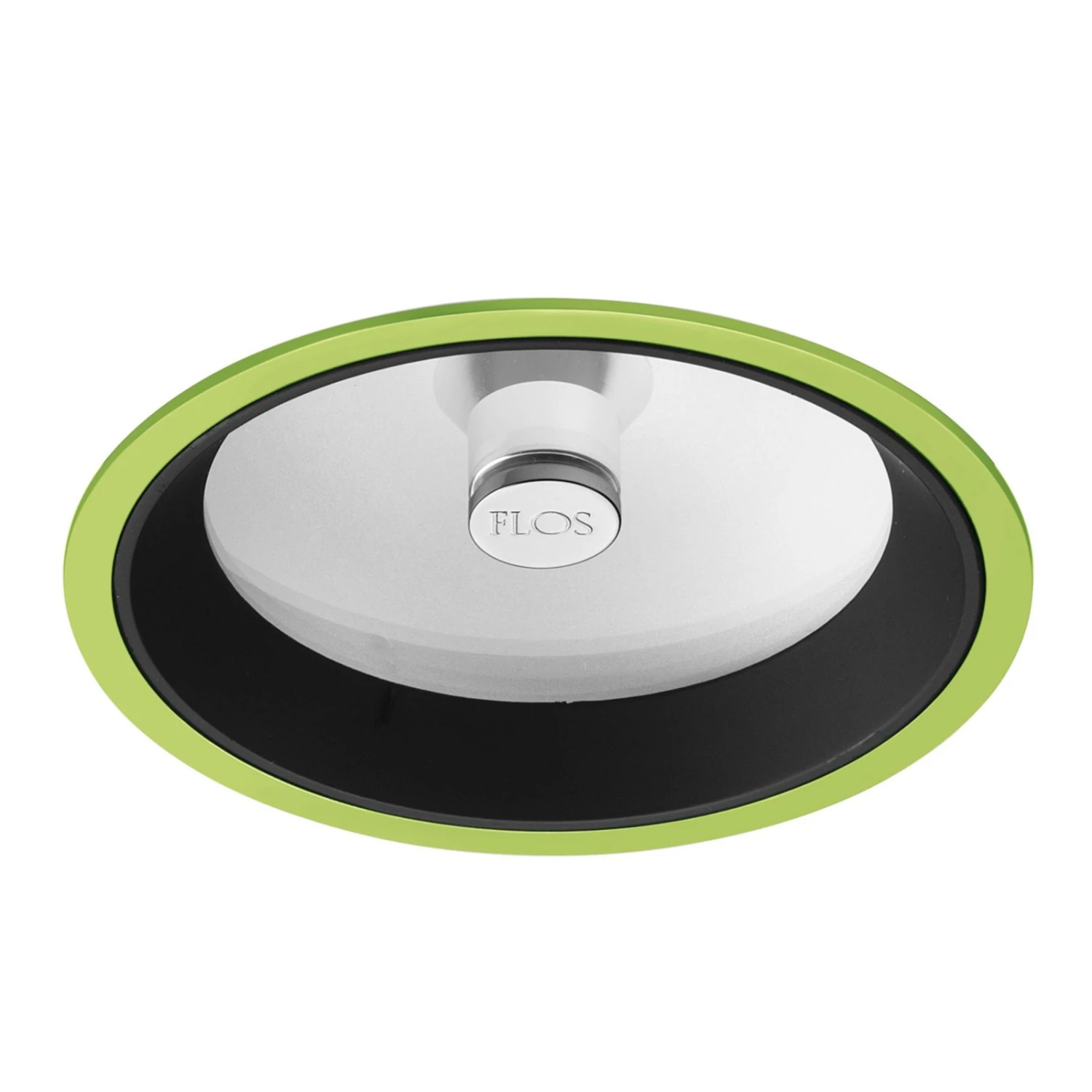 Dieses Downlight der Designerin Johanna Grawunder ist in ansprechender Optik gestaltet worden und bietet sich für die Verwendung in privaten Räumlichkeiten an, kann aber natürlich auch in gewerblichen Objekten zum Einsatz kommen. Der Rahmen der Einbauleuchte ist wahlweise weiß, schwarz, alufarben oder grün und je nach Auswahl können besondere Akzente gesetzt werden, wobei die grüne Variante natürlich ein ganz besonderes Highlight mit erfrischender Wirkung darstellt. Anders als bei den meisten Einbauleuchten ist das Halogenleuchtmittel von einer satinierten Glasplatte bedeckt, so dass eine angenehme Verteilung des Lichts bewirkt wird, die zu einer wohnlichen und einladenden Atmosphäre beiträgt. In der Mitte der Glasplatte sitzt zudem ein silberner Button mit dem Schriftzug FLOS. Wan wird mit zwei austauschbaren Innenringen in den Farben Grün und Schwarz geliefert. So kann man der Leuchte – je nach Wunsch – ein unterschiedliches Aussehen geben.